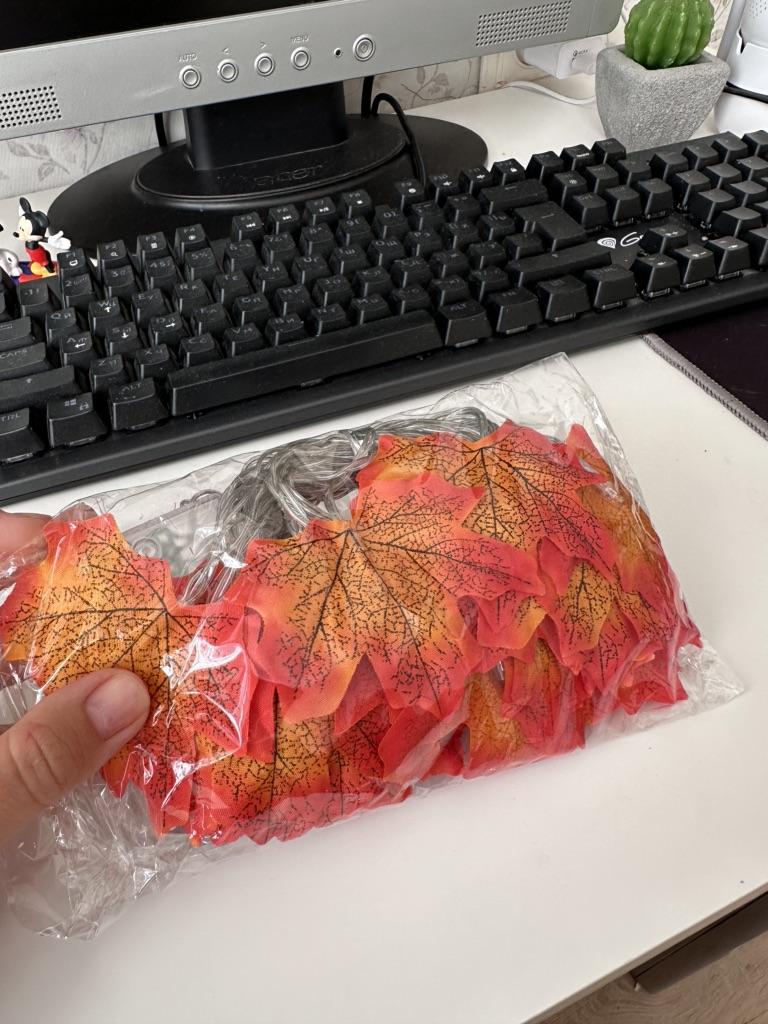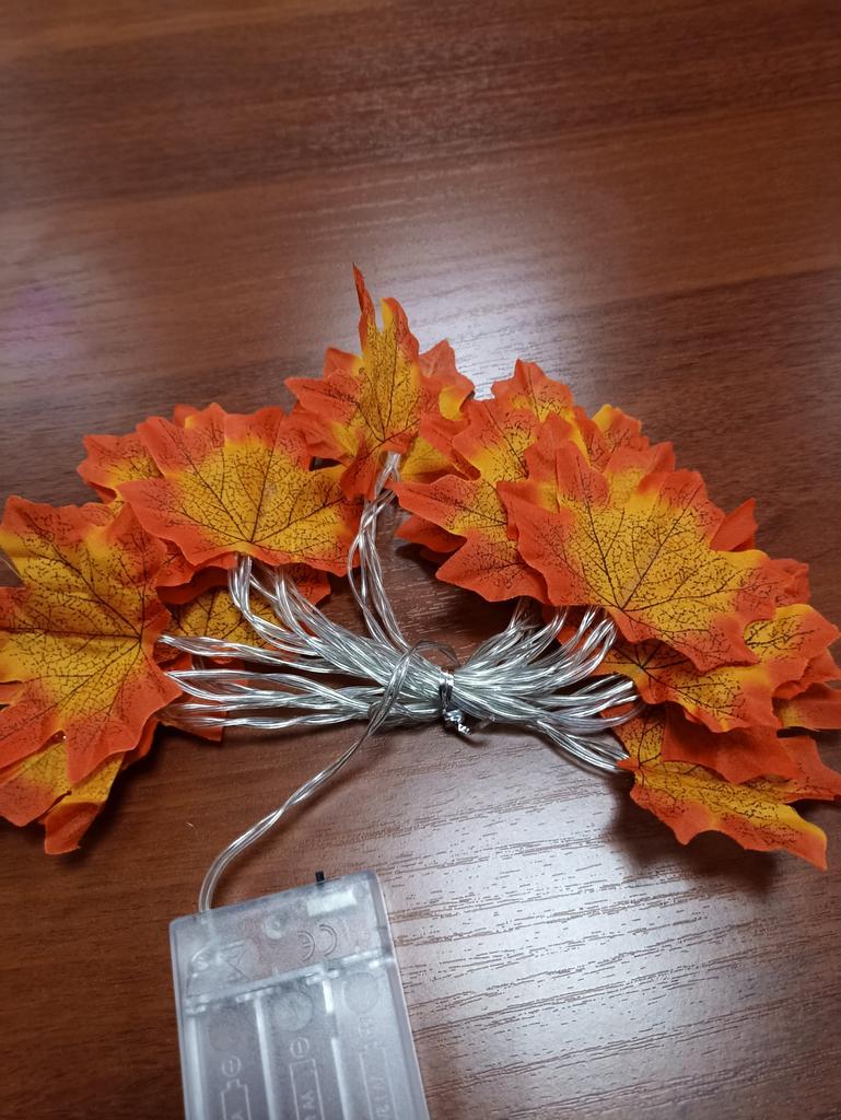 *Гирлянда с листьями* Привет всем, получила гирлянду! Очень красивая, работает от батареек типа АА (пальчиковые, в комплект не входят)! Работает гирлянда хорошо, но с перебоями, то включается, то не включается! Видимо, что-то с контактами! Батарейки у меня абсолютно новые, дело не в них! Это, не страшно, конечно: её можно использовать просто как украшение интерьера, можно даже и не включать! Лучше, конечно, было бы, если бы она работала от сети! Приобрела за 436₽. Доставка до Калининграда 36 дней, отслеживание полное! Забирала с почты, в сборной посылке с другими товарами! Спасибо продавцу и Joom, товар рекомендую!)