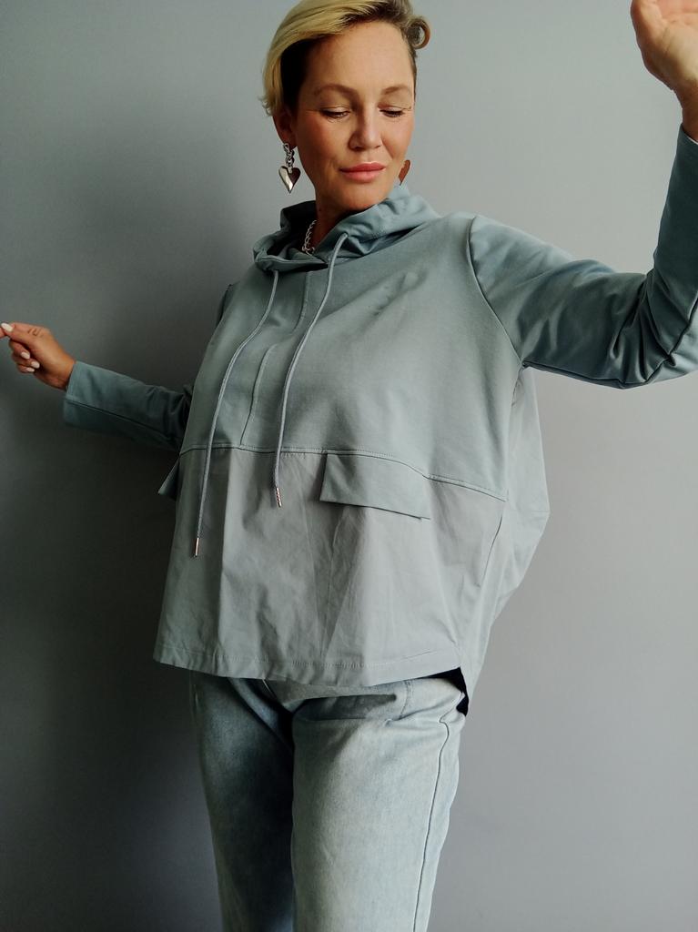 Свитшот с капюшоном 💙👍💯.... Доставка в огромной сборной посылке 1,5 мес, живым треком . 🛩 📦 Девочки, это ВЕЩЬ !!! Цвет полностью совпадает с промофото продавца . А вот единый размер вышел по факту даже больше, чем заявлено , чему я несказанно рада ! 👍😀 Точные замеры : Объём груди 130 см ! Это супер!!! Ширина плеч 41 см Длина рукава 55 см Длина изделия по спинке 62 см, но учтите, что есть расщипление на два клина. Длина переда 65 см. По материалу : Капюшон, рукава, перед до пояса выполнены из эластичного материала . Всё остальное из материала, напоминающего плащёвку, но он более мягкий, довольно приятный . Капюшон со шнурком, кармашки-клапаны обманки. На спинке- кокетка со сборкой. Исполнение идеальное ! 👍💯👍 Очень комфортная вещь. Мне всё в ней понравилось ! 😍👍 Рекомендую очень ! 💯💯💯 Спасибо, Джум ! 😘😘😘 Люблю вас за такие 📦😘😘😘