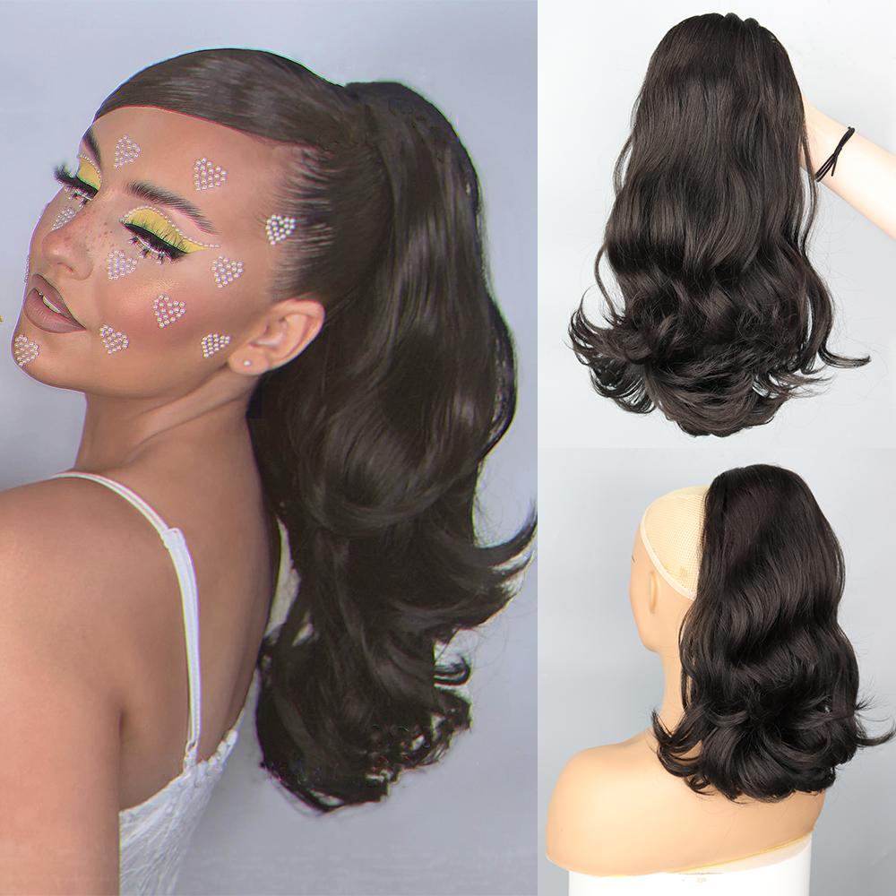 LISI HAIR Синтетический 18-дюймовый объемный хвост для наращивания волос с двумя пластиковыми расческами, натуральный черный хвост с завязками