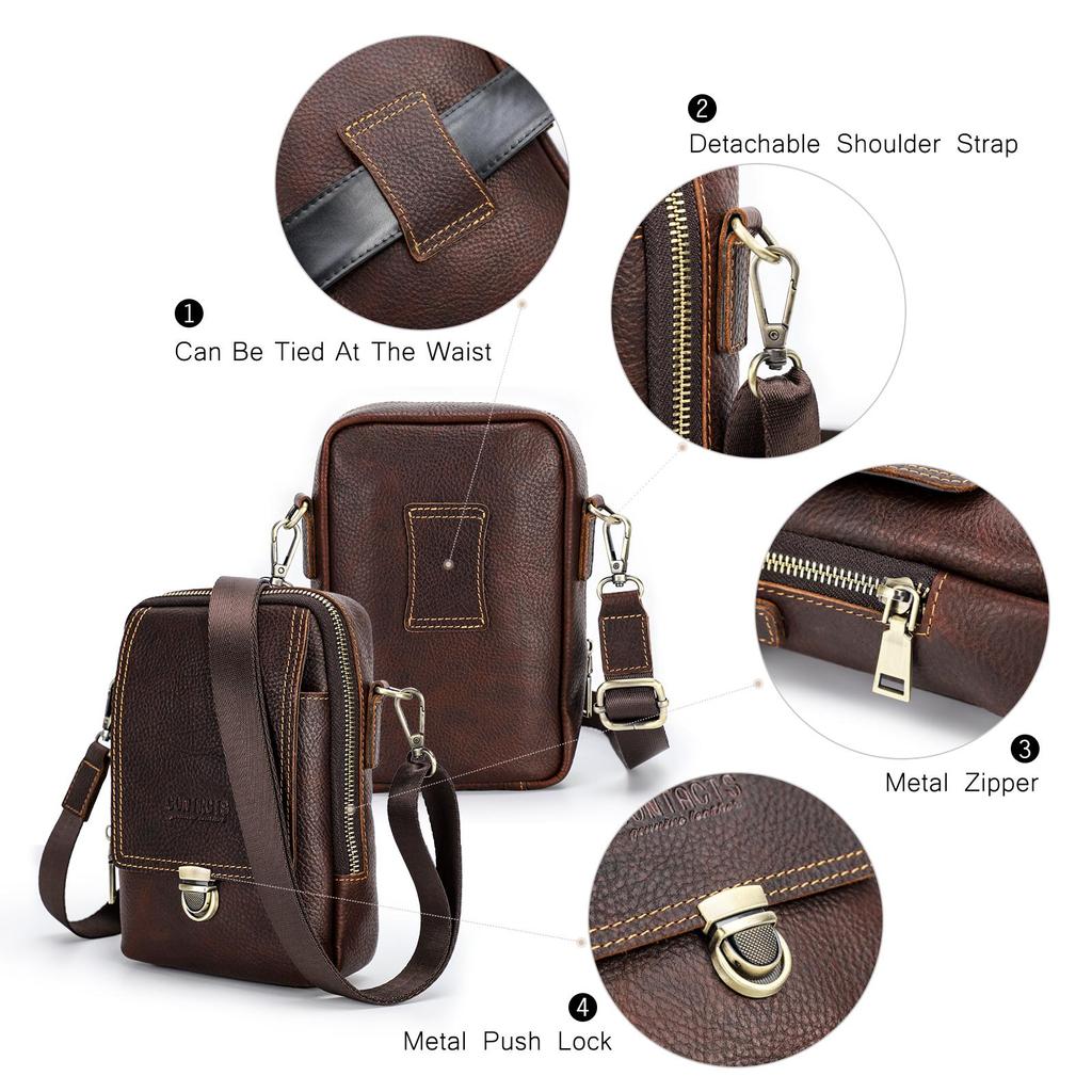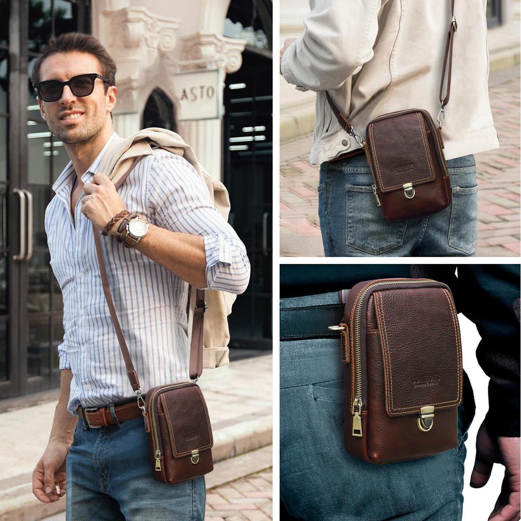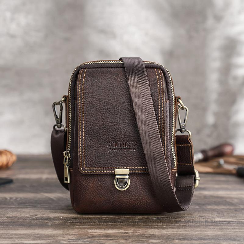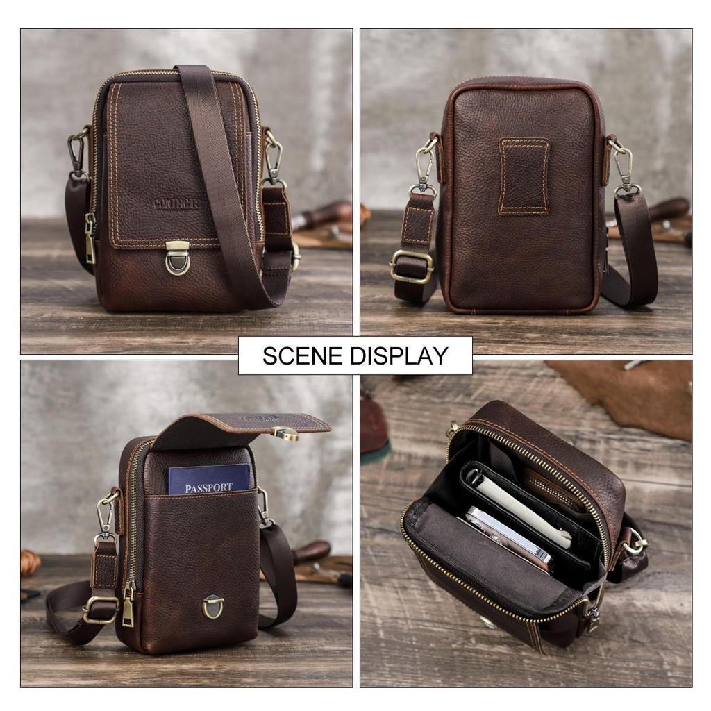 Мужская маленькая сумка-мессенджер из натуральной кожи, повседневная сумка через плечо с отделениями для карт