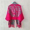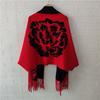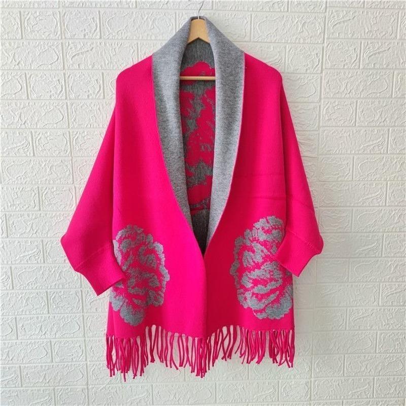 Женское пончо 2022, осенне-зимний шарф из искусственного кашемира с пионом и бахромой, двусторонняя теплая накидка с длинными рукавами, женский топ