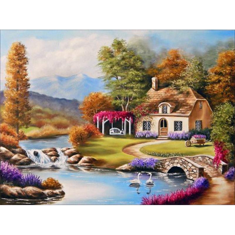 Пейзаж Дом DIY 5D алмазная живопись полный круглый дрель мозаика горный хрусталь пейзаж Алмазная вышивка крестиком домашний декор