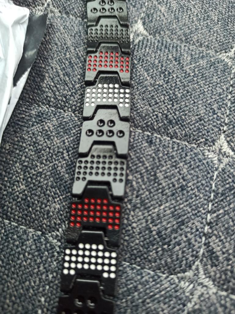 Товар говно полное, столько ждать, больше месяца и получить такое дерьмо 💩💩💩, описанию не соответствует, размер уже чем заявлено,фактическая ширина 13 мм в место заявленных 18, в общем не рекомендую, стремный браслет... Вместо магнитов просто покрашен краской. Продавец непонимай какая нада тебе браслета, как они говорят, продают что попало...
