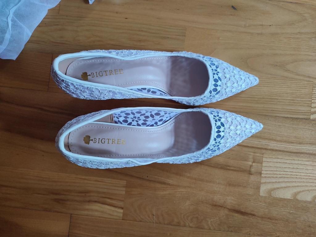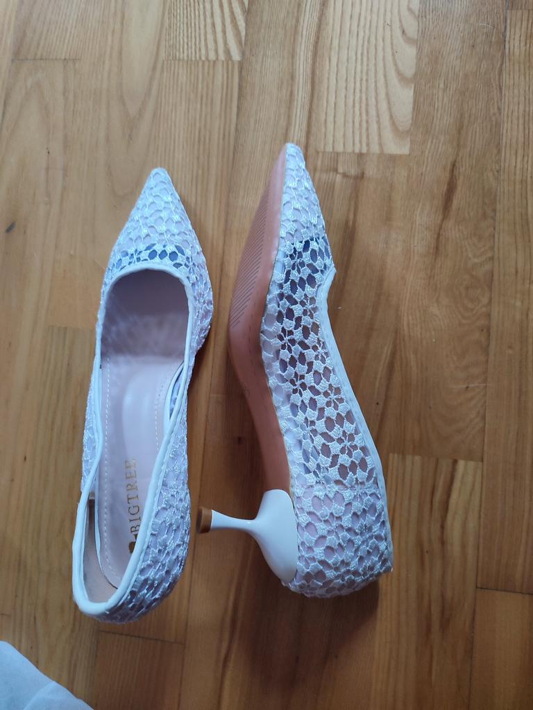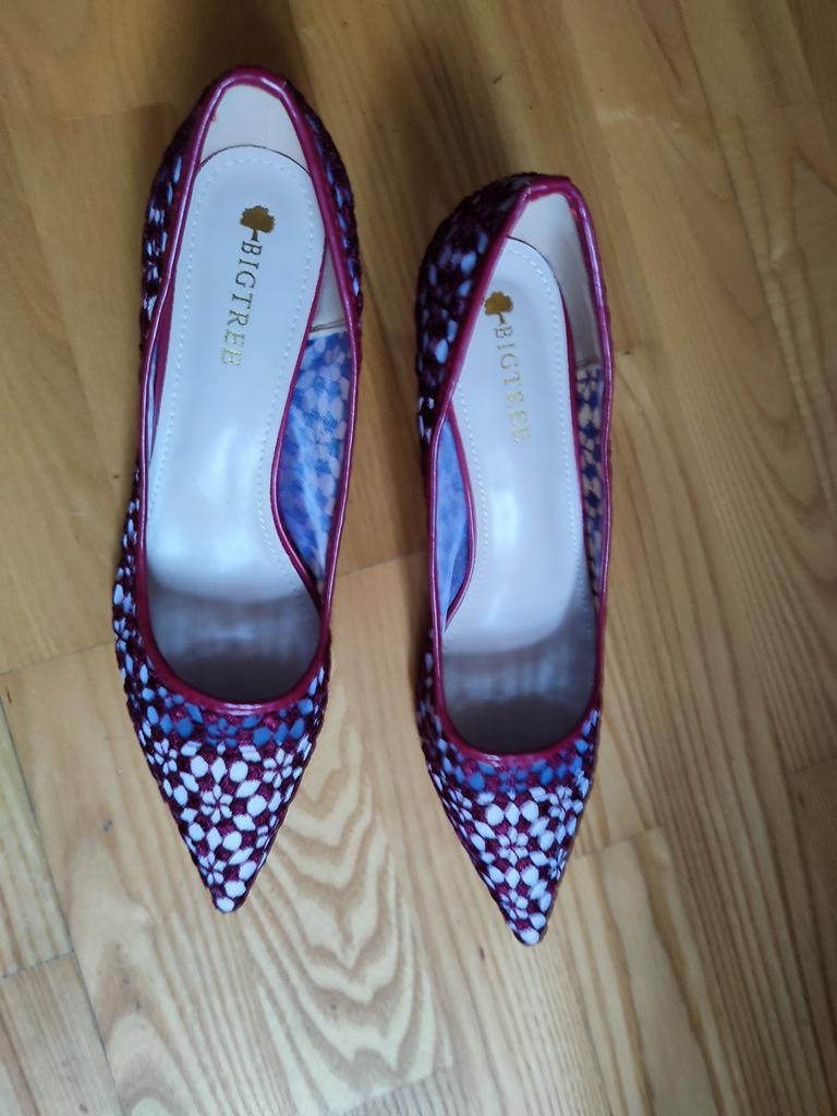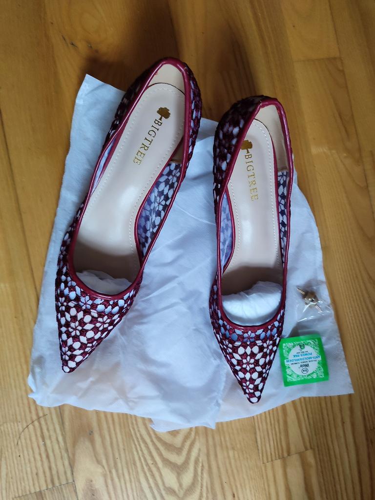 Туфли понравились, размер подошёл, но сейчас лето, ни стала колготки напяливать, налезли и ладно. Были тщательно упакованы, каждая туфелька в отдельном тканевом пакете и все вместе в вакуумном корфе. Туфли, конечно, банкетные, ни на каждый день. Очень красивые, нежные, каблучок небольшой около 6 см. Носик узенький, на узкую ножку. Купила за 1371 ₽.