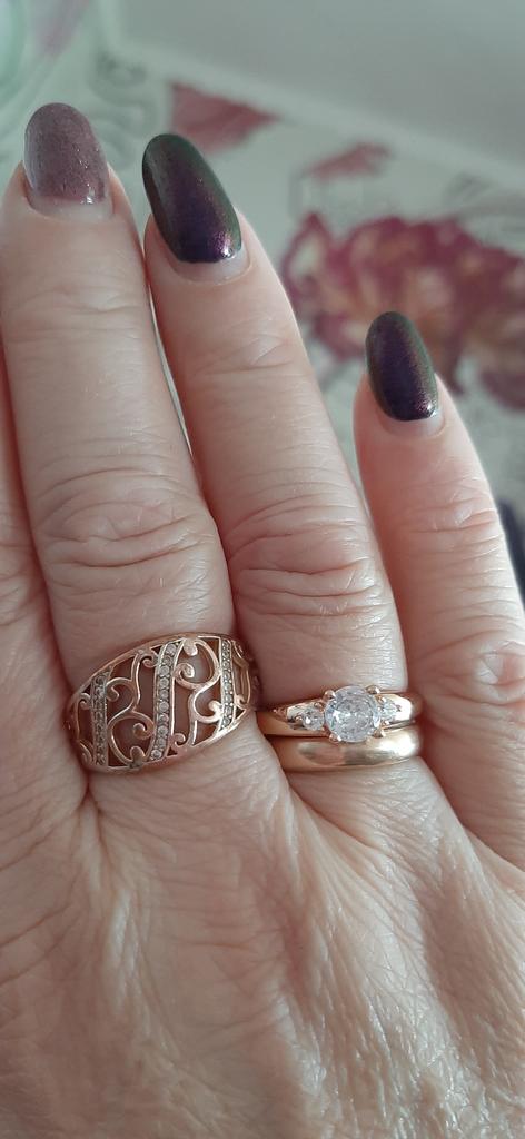 Очень красивое кольцо, шло очень долго,цвет как у золота,рядом обручалка,жалко что они со временем все облазят у меня,рядом кольцу месяца 2 наверно всего,вид уже не тот,если на фото видно,ношу постоянно.