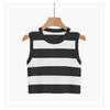 Сексуальная женская майка в рубчик, летние укороченные топы без рукавов в полоску с круглым вырезом, уличная винтажная корейская модная рубашка, жилет, одежда Y2K