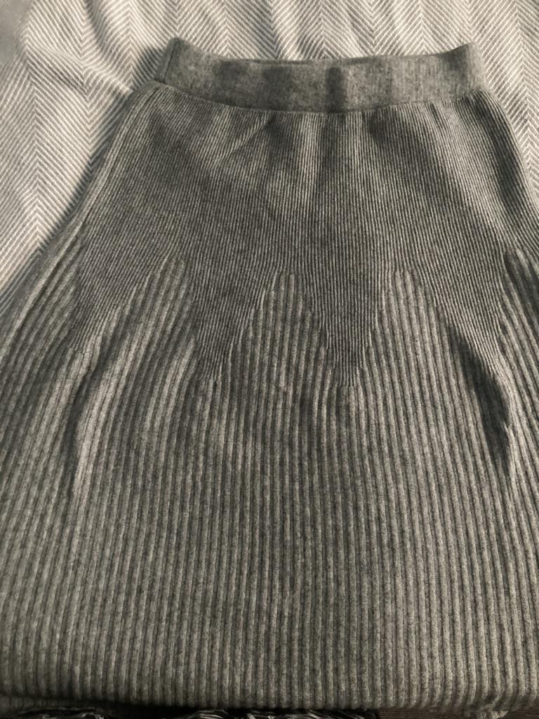 Юбка серого цвета, трикотаж неожиданно хорошего качества. Плотный, но не жёсткий. Размер на 50-й - в самый раз, при росте 156 см - длина до середины икры. Есть невыраженный рисунок. Фасон - небольшое расклешение. Прекрасное соотношение цены и качества. Спасибо продавцу и Joom!