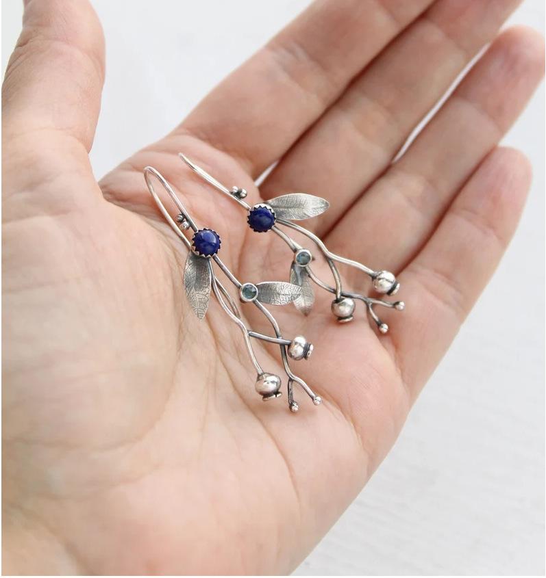 Винтажные висячие серьги с синим камнем и листьями для женщин, модные ювелирные изделия, эффектные серьги-капли в этническом стиле, интимные аксессуары — купить товар онлайн с бесплатной доставкой по всему миру!
