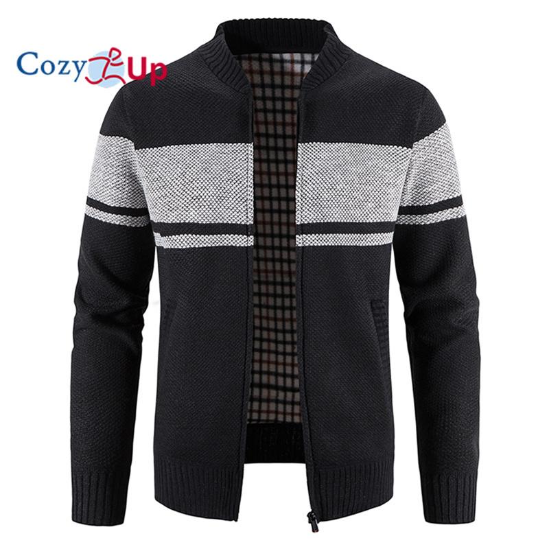 Cozy Up Свитер с длинными рукавами, мужской тонкий шов, удобный воротник-стойка, доступ к молнии, вязание