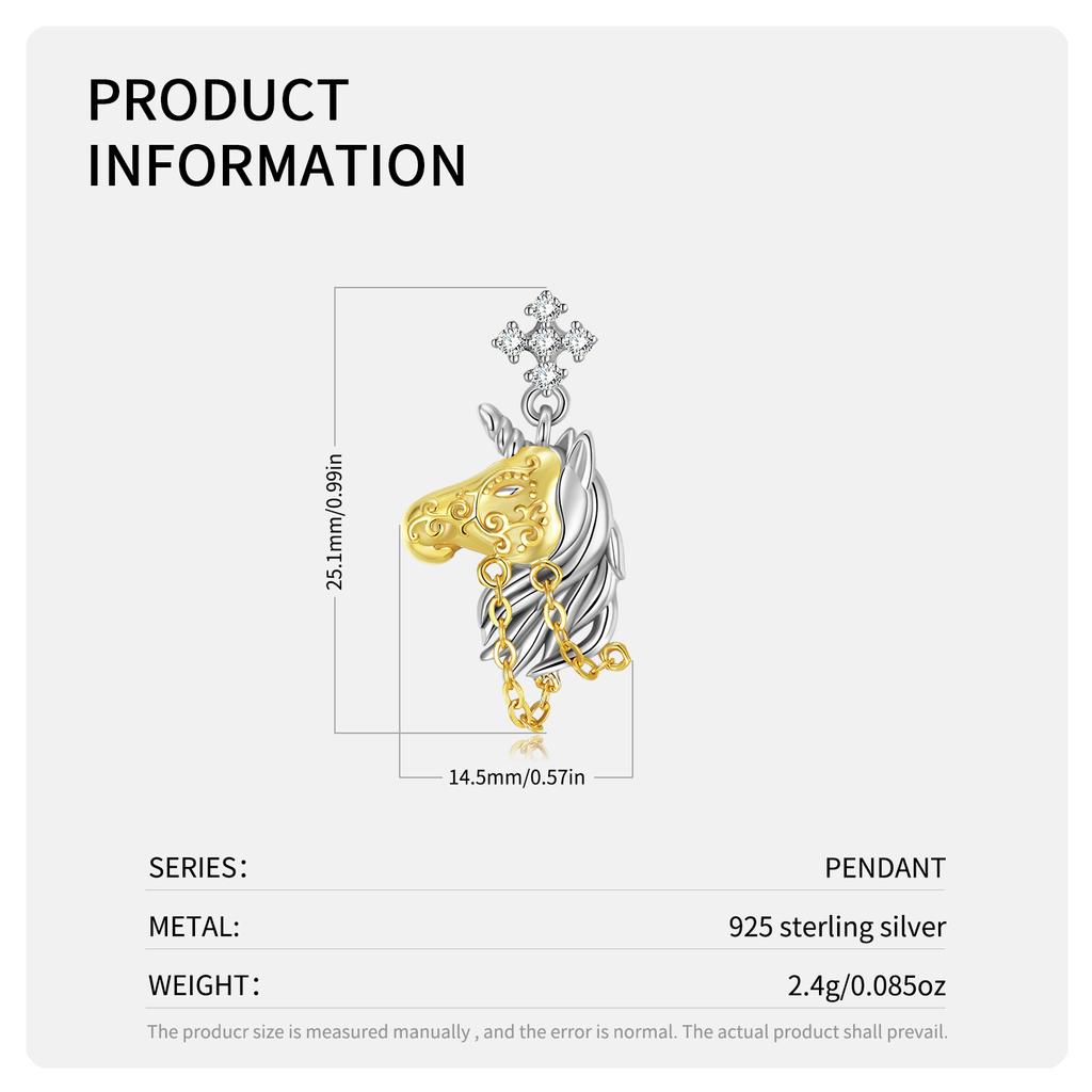 Ожерелье с подвеской в виде сердца единорога с подвесками из циркона, Аутентичные бусины из стерлингового серебра 925 пробы для женщин, ожерелье, ювелирные изделия, позолоченный подарок