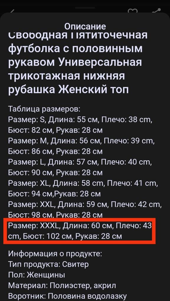 Заказала розовую кофту с половинчатым рукавом за 519 ₽, в размере XXXL. Замеры по груди и плечам не сходятся с описанием продавца. И бирки с размером не было. Писала в службу поддержки, вернули половину стоимости 259,50 ₽. Резать не стала, так как решила носить дома, как и планировала. Обтягивает везде конечно, но зато практичная и не холодная. Также пригодится, когда отопление отключат, на кухне готовить (как раз руки будут открыты как надо и не холодно будет телу), в других случаях - в кофте с длинными рукавами.