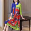 Плиссированная длинная юбка-поло, свободное платье большого размера, тонкое женское платье 2022 года, новое летнее платье с семиточечным рукавом и отложным воротником с принтом