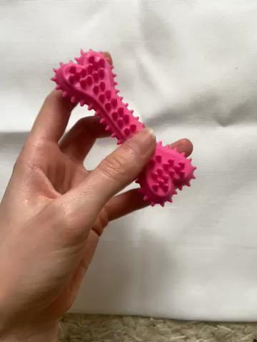 Хорошая игрушка, у нас салатового цвета. Наш Боня игрался с ней с удовольствием! Прятал ее от меня потом находил и грыз. Показатель качества это то что песик за пару месяцев сгрыз игрушку полностью