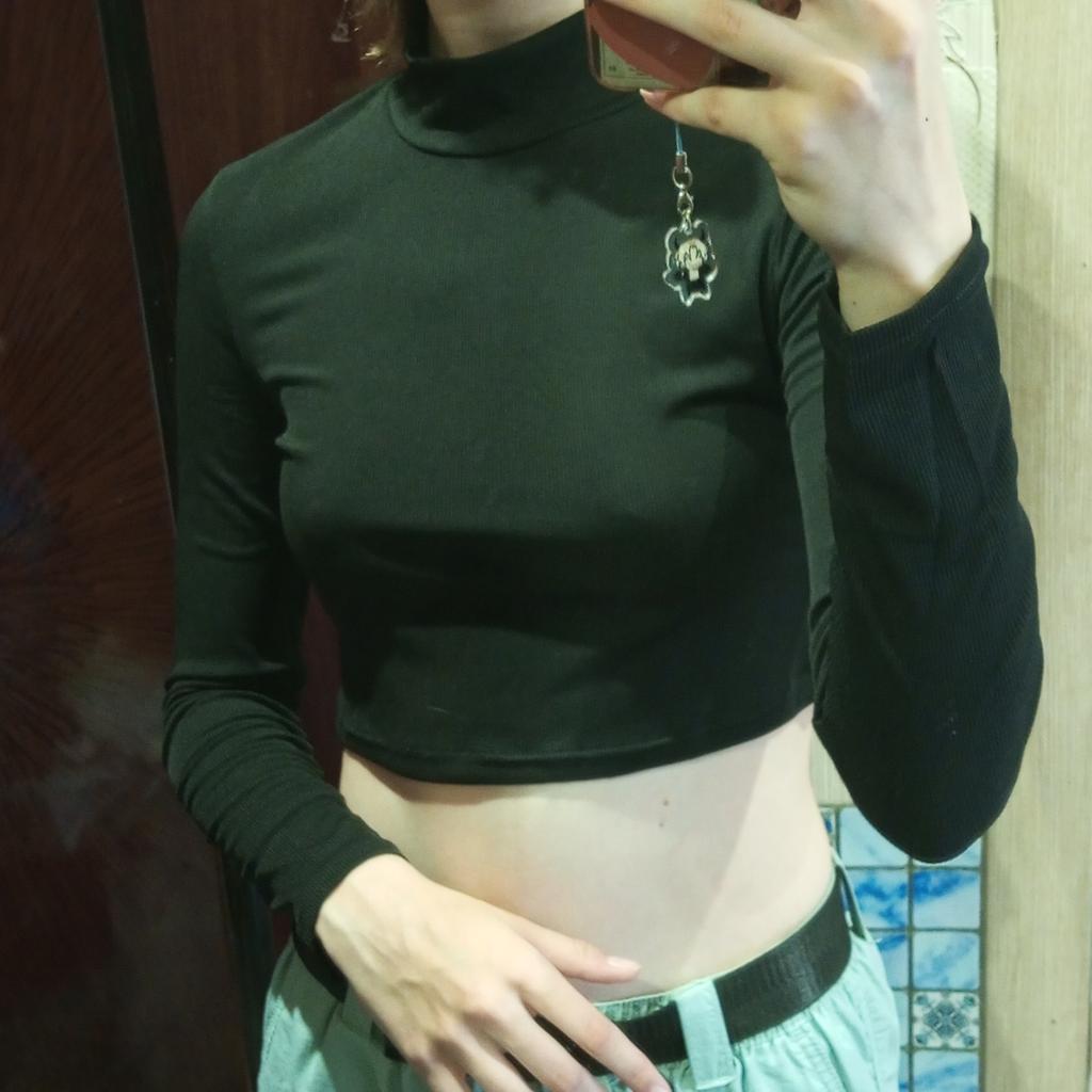 Однотонная телесная укороченная футболка с воротником и воротником, женская осенняя повседневная футболка с длинным рукавом, женская узкая базовая футболка Femme