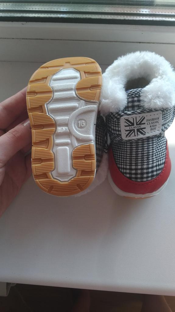 Ботиночки очень хорошие, тёплые, мягкие. Моему сыночку идеально подошли. Ждали, конечно долго их, но пришли как раз к зиме. Везде целые, ни зараза, ни клея. Просто красота. Нам 11 месяцев, на пальчик велики, но это как раз самое то. Продавцу спасибо и Joom 😉👍