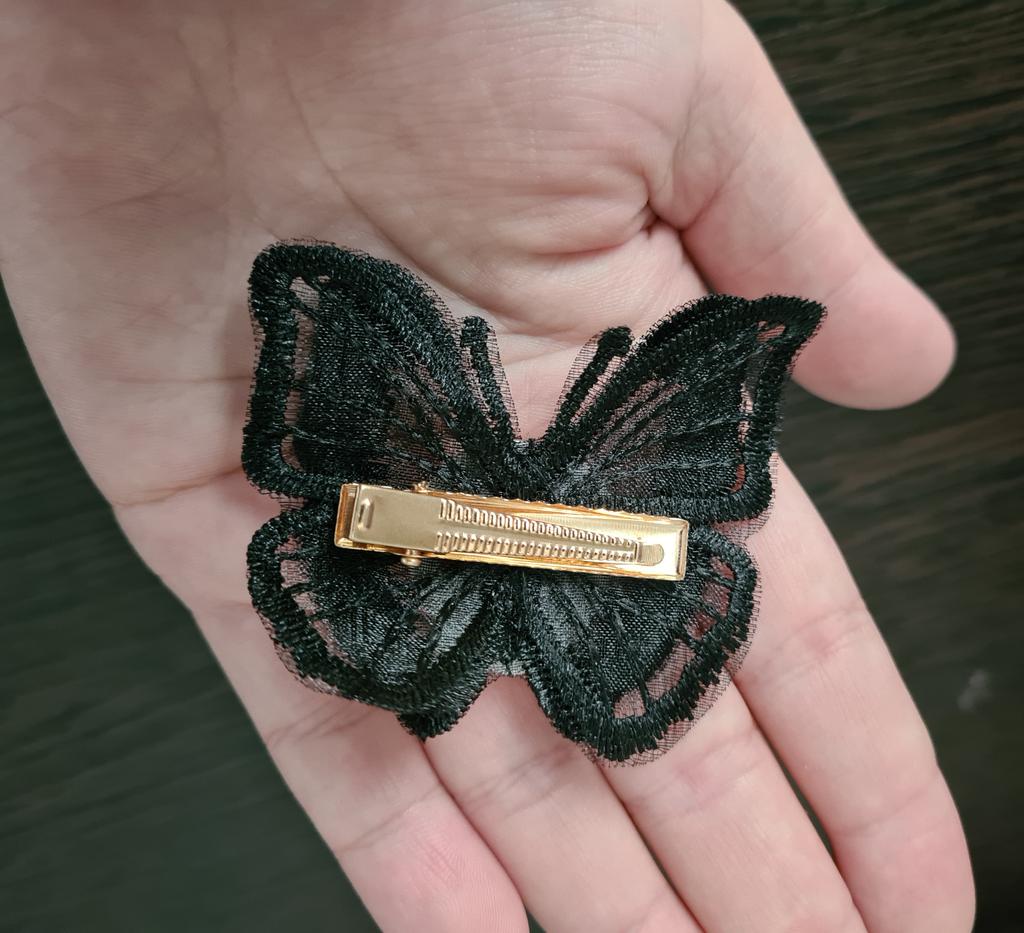 Получили товар спустя 33 дня, не отслеживается. Заколка хорошая, застёжка крепкая, металическая, есть не скользящая лента, чтобы заколка не сползала, на волосах выглядит оригинально, упакована хорошо. Заказом довольны.