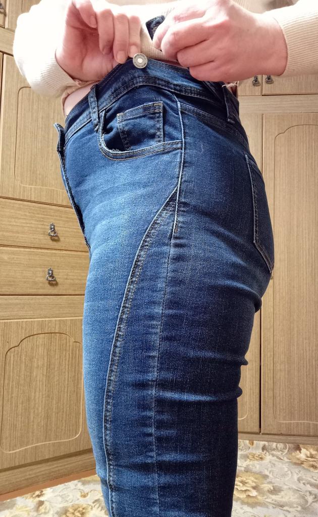 Джинсы скинни. ‼️На мне размер 2xl. Мои параметры : 167, 96-82-98. По размеру идеально. ‼️Джинсовая ткань с эластаном, но тянется не сильно. Обусловлено это своеобразным покроем- от бедра, вниз, идет шов, который визуально удлиняет ноги и стройнит. ‼️Посадка средняя, ближе к высокий. Резинки на талии нет. Фурнитура металлическая . Все карманы функциональные. Цвет синий, местами потертости. Пошив фабричный. 📐Замеры: ОТ 74 ОБ 96 Высота посадки 30 Длина внутреннего шва 64 Длина 90 Ширина брючины внизу 13,5 Ширина брючины в районе бедра 27