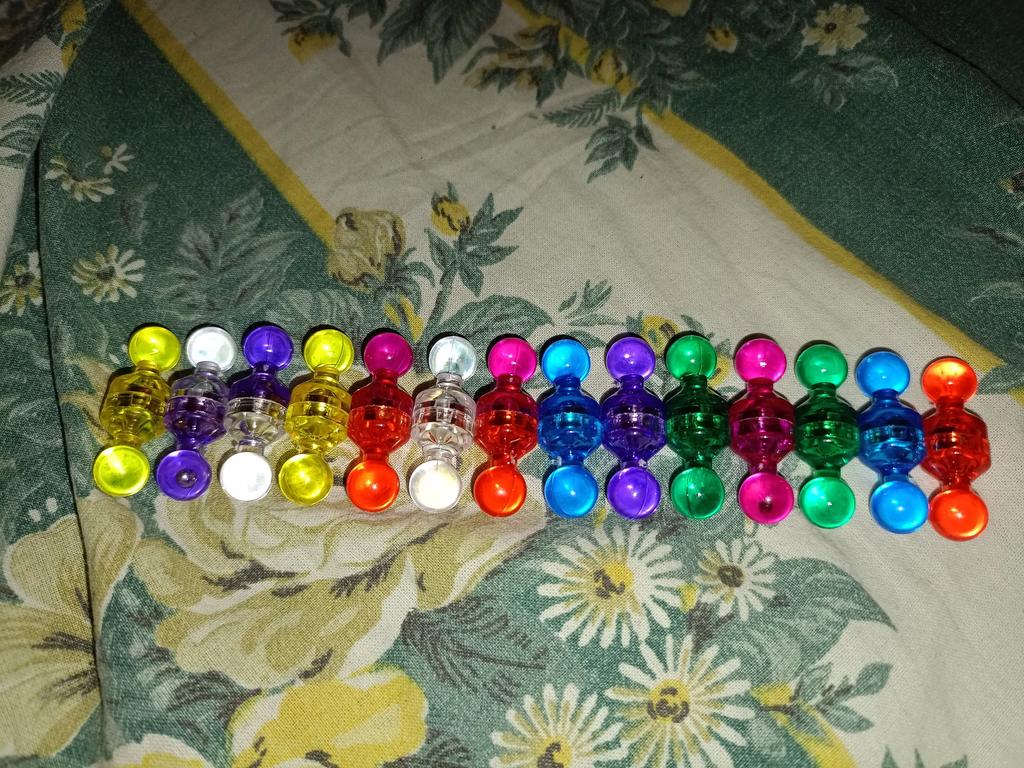 Добротный и выгодный набор магнитов 28 шт., разноцветные, аккуратные, ровные, и баночка для хранения пластиковая с металлич.крышкой удобная) Магнитятся хорошо (серый магнит посильнее).