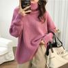 Осень-зима, крупный однотонный пуловер с высоким воротником, свитер, женский новый джемпер, свободные и ленивые повседневные вязаные топы с длинными рукавами