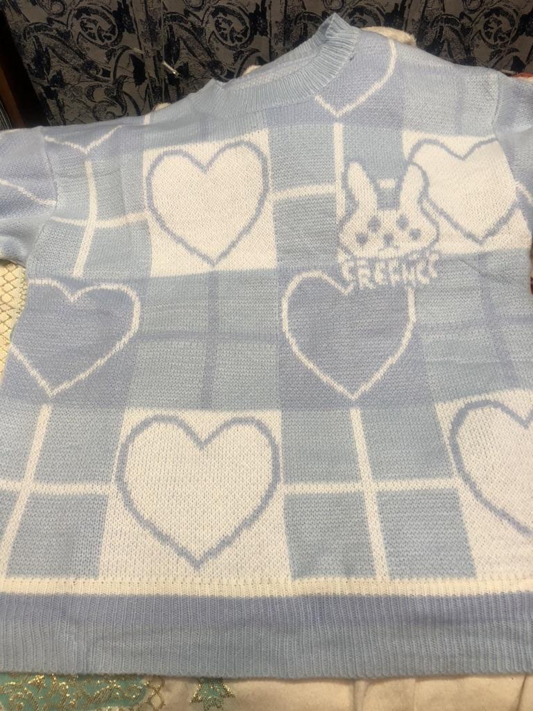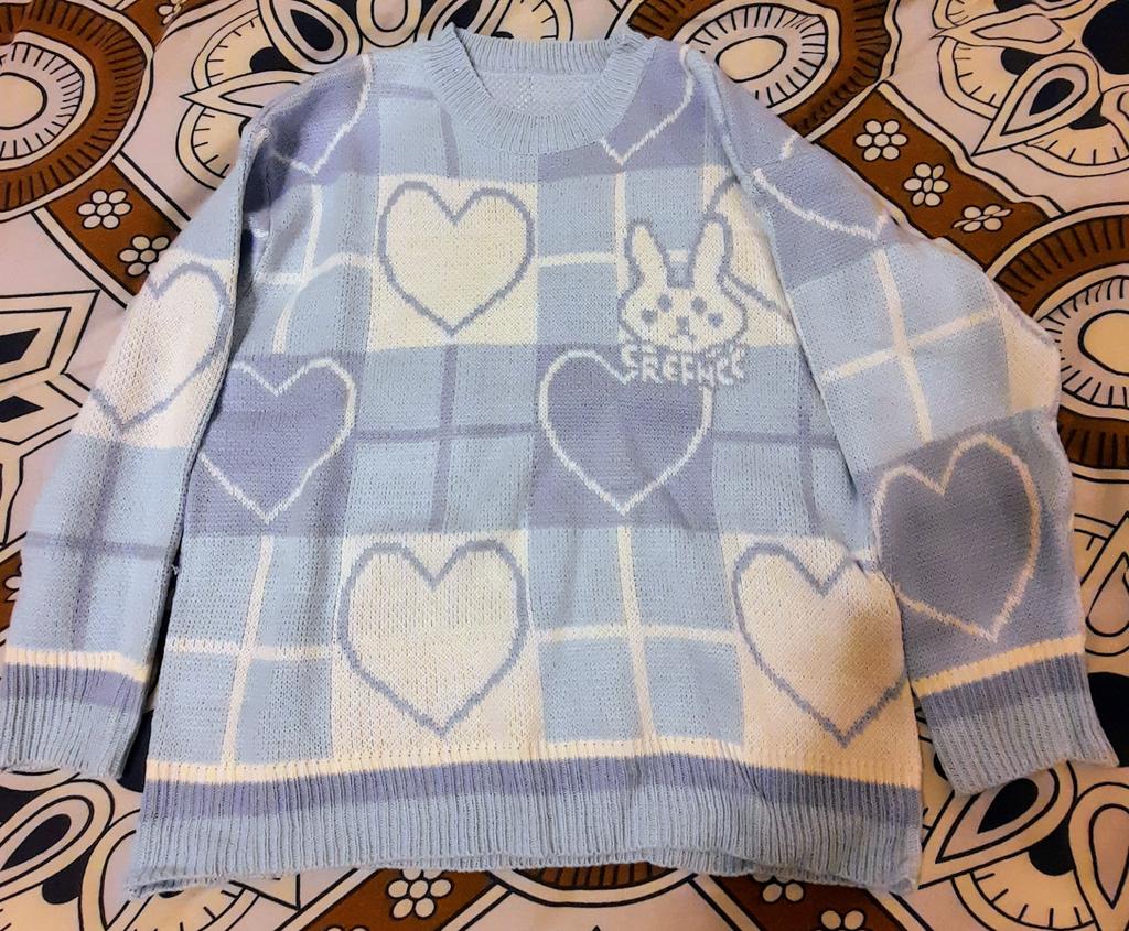 Японский винтажный вязаный свитер. В голубом цвете. С зайчиками и сердечками. Размер S как раз. Брала за 1291р. Продавца рекомендую 🔥