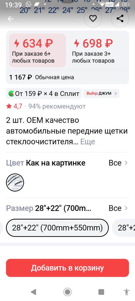 Одна щётка, водительская, на 600 плохо очищает лобовое стекло, пришлось поменять на старую щётку. Щётка на 550 чистит хорошо, вопросов нет.