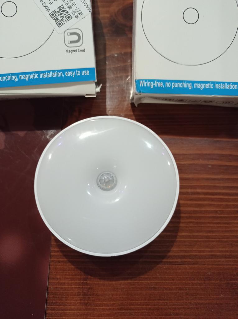 Аккумуляторный фонарик с датчиком движения его можно закрепить за головку самореза или гвоздя или на железную поверхность с помощью магнита установленного на задней стороне или закрепить имеющуюся самоклеющуюся металлическую пластину на какой либо поверхности и к ней закрепить фонарик , а также его можно включить для постоянного освещения переключив кнопку во второе положение , единственный недостаток что при зарядке аккумулятора непонятно когда он зарядился так как красный светодиод не выключается , а черезмерный перезаряд аккумулятора приводит к его выхода из строя.....