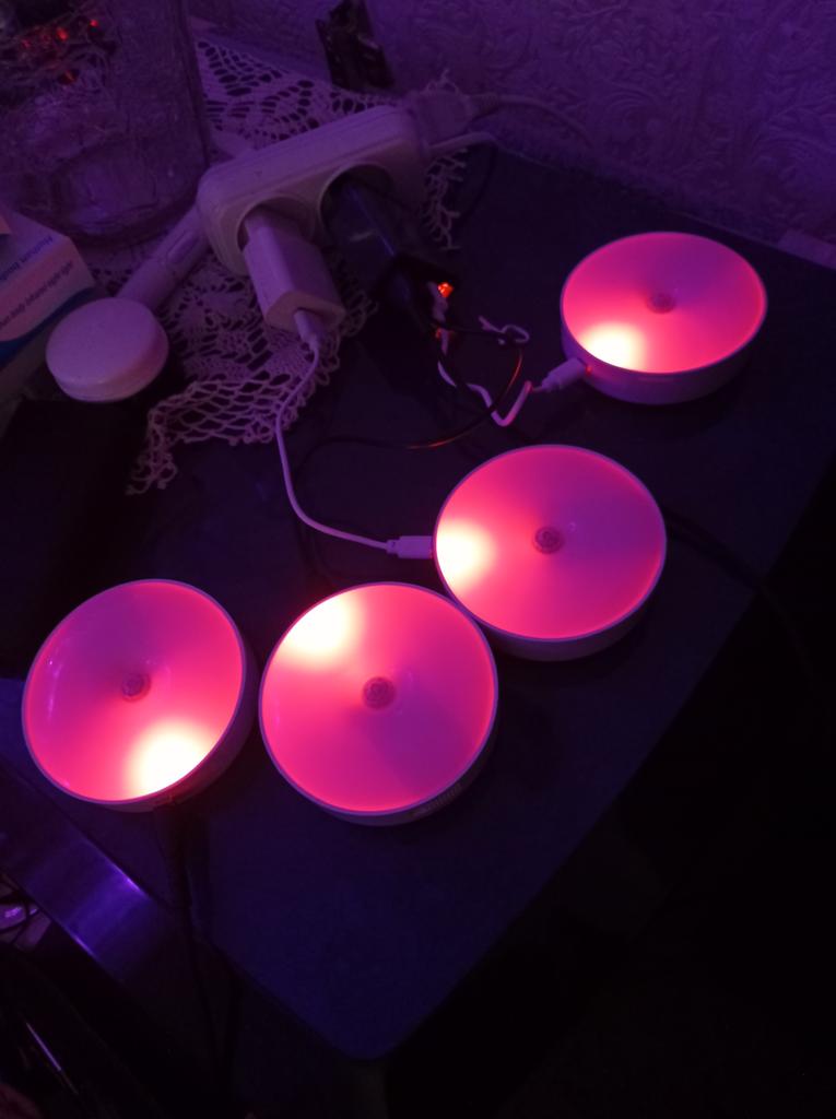 Всем привет. Выписываю второй раз, очень классные подсветки на usb зарядке. Имеют датчик движения. Очень удобная вещь!!! Выписала 8 шт. Пришли не заряженные, зарядила-все работает, все нормально. Работают на 3 режимах- откл, авто,норм. Я очень довольна. Ставишь на авторежим светильник днём при дневном свете не включается, только когда темнеет и реагирует на движение до 3м. Заряжается через usb. При зарядке горит красным, когда полная зарядка красный индикатор пропадает... Спасибо большое продавцу за товар, упаковано было хорошо и цена хорошая. Рекомендую товар и продавца!!! Джуму отдельное спасибо за доставку! Процветания вам, ребята и спасибо!!! С уважением Оксана.