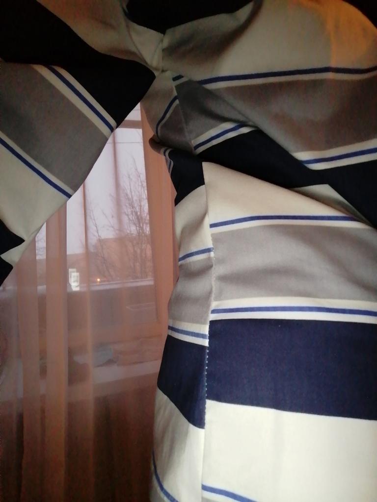 Поддерживаю комментарий Наталии Романовой, но не понимаю, почему за такое качество ставят 5 звезд... 1) по цвету на фото есть бежевый с серым и черным. Общий оттенок теплой гаммы. На самом деле преимущественный цвет - сине-серый и совершенно холодный оттенок. Я даже сначала подумала, что перепутали цвет. Но он в описании называется синий. Будьте готовы! 2) По кривизне стыковки полос: от одного бока до другого полосы разбежались. 3) По составу: хлопка не наблюдается