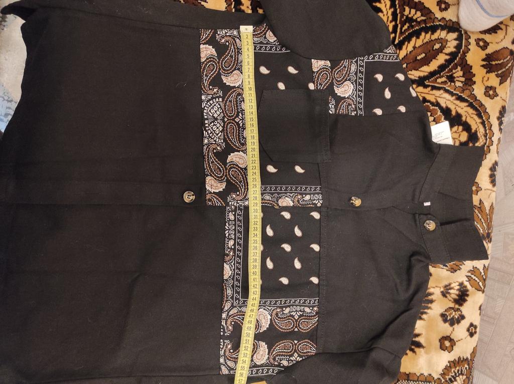 Плотная джинсовая рубашка ,2XL размер на параметры ОГ 116 , ОБ 116 ,рост164 , длина рукава хорошая рукава,на манжетах ,можно застегнуть ,можно завернуть ,спинка длиннее переда ,рисунок красивый. Не пожалела , что купила . Да два нагрудных кармана рубашку не портят,а наоборот. Материал - хлопок .