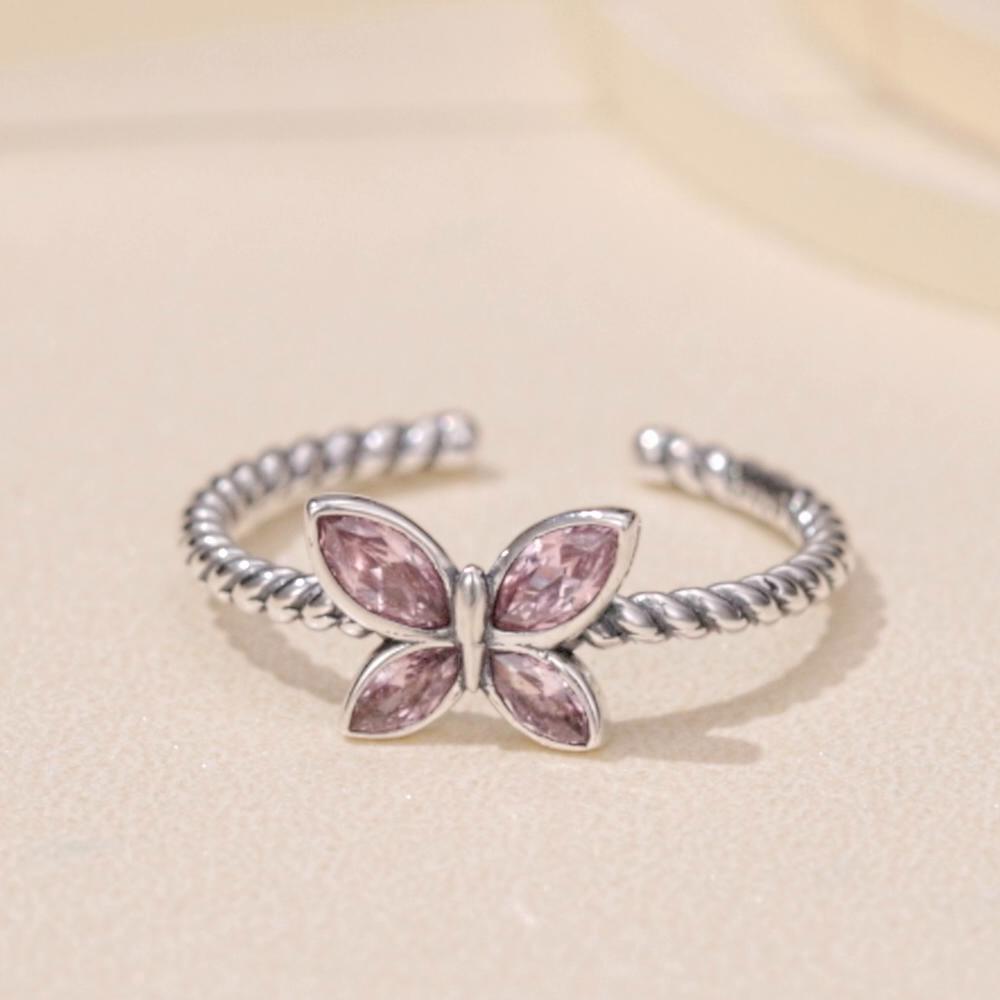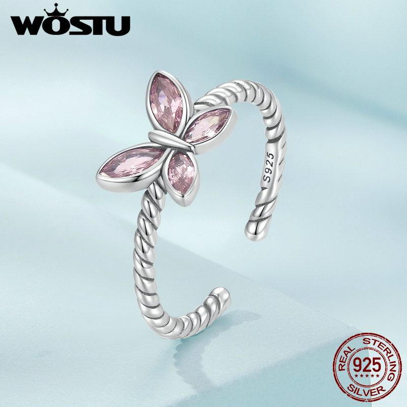 WOSTU Женские открытые кольца из стерлингового серебра 925 пробы с розовыми бабочками, блестящее прозрачное регулируемое кольцо с цирконием, семейные украшения для дня рождения, вечеринки
