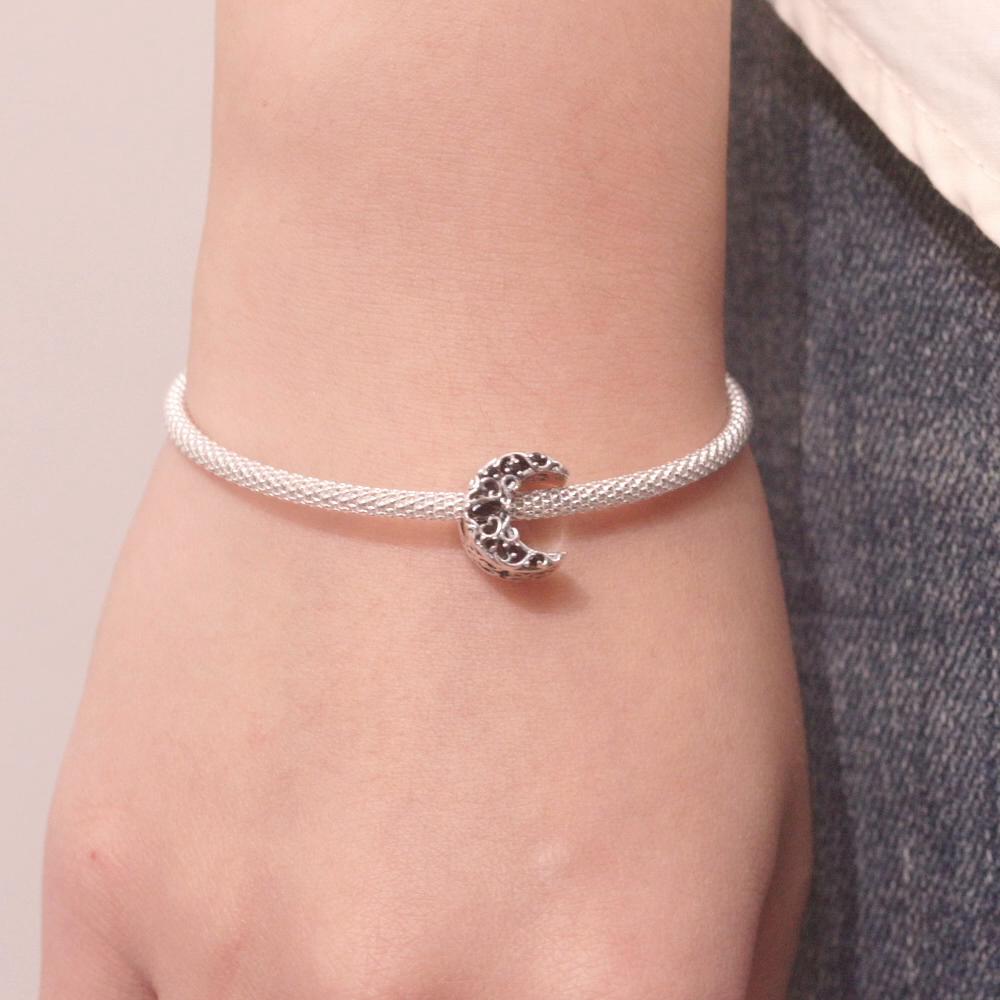 WOSTU Очаровательные лунные бусины со звездами и галактиками из стерлингового серебра 925 пробы в стиле темной ночи, подходят для изготовления женских браслетов и браслетов своими руками, ювелирных изделий