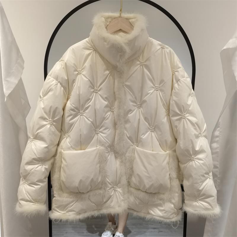 Женская осенне-зимняя куртка на белом утином пуху, пальто с подкладкой и короткой стойкой с меховым воротником, однобортный карман, свободный теплый однотонный цвет — купить товар онлайн с бесплатной доставкой по всему миру!