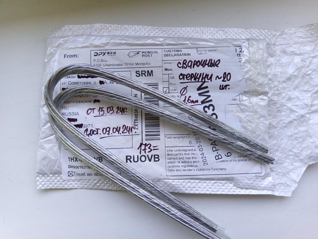 Пришел вот в таком пакете. Отогнутый пруток это я проверял. Советую 👍. Единственное, не смог расплавить 100Вт паяльником, газовой горелкой, на ура. Так что смотря что собираетесь паять 🤷. Продавец и сроки тоже хорошо 👍
