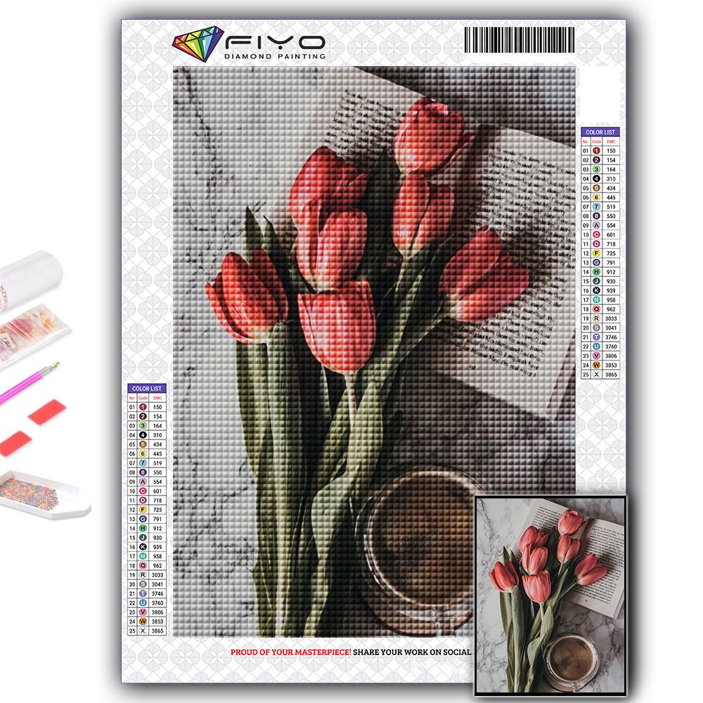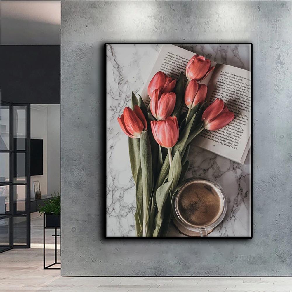 5D DIY Алмазная картина Вышивка крестиком Тюльпаны и кофе Алмазная вышивка Мозаика Настенное украшение дома