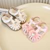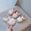 Летние детские удобные модные уличные пляжные туфли в пасторальном стиле с жемчужной сеткой и бантом, с мягкой подошвой, летние сандалии