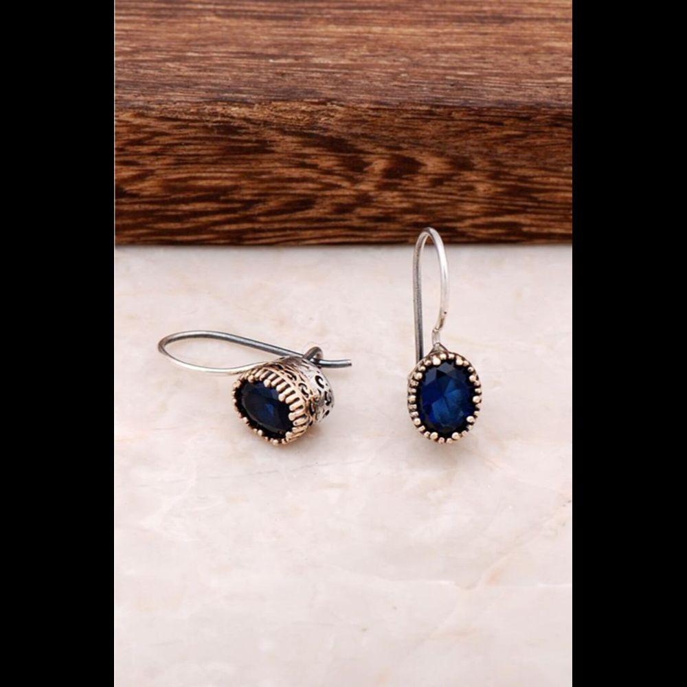 Женские серебряные дизайнерские серьги ручной работы с сапфировым камнем — купить товар онлайн с бесплатной доставкой до всему миру!