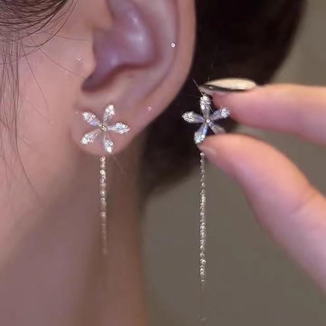 ANENJERY Новые серьги с цветком циркона, модные индивидуальные серьги с кисточками для женщин, свадебные украшения, подарок