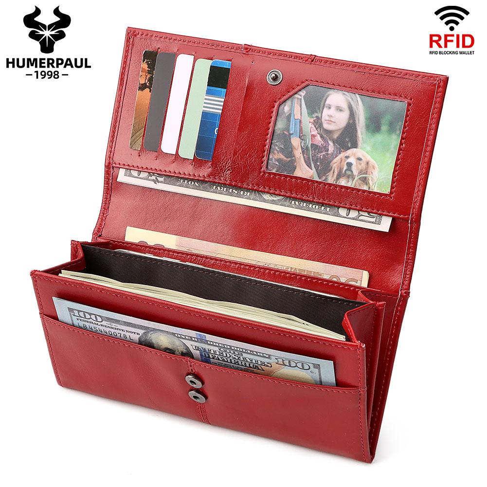 Женский кошелек из натуральной кожи, RFID-бумажник с несколькими картами, кошелек для мобильного телефона, дизайнерский длинный тонкий кошелек Lallet