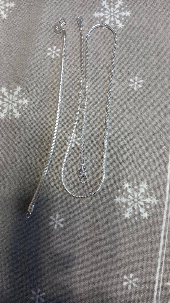 Очень разочарована. Для сравнения сфотографировала с браслетом, который заказывала ранее, хотела цепь под него. Браслет очень нежный, красиво изгибается.Но увы, на цепочке металл другой, поверхность не гладкая, изгибы грубые, хотя цепь гораздо меньше по диаметру. Спасибо службе поддержки за быстрый ответ на претензию.