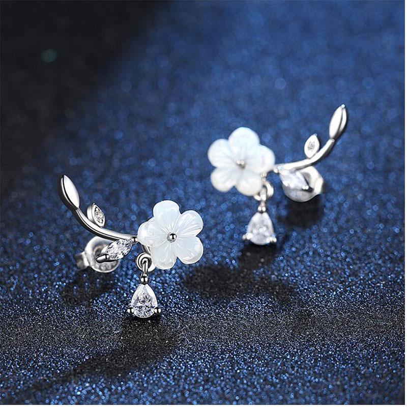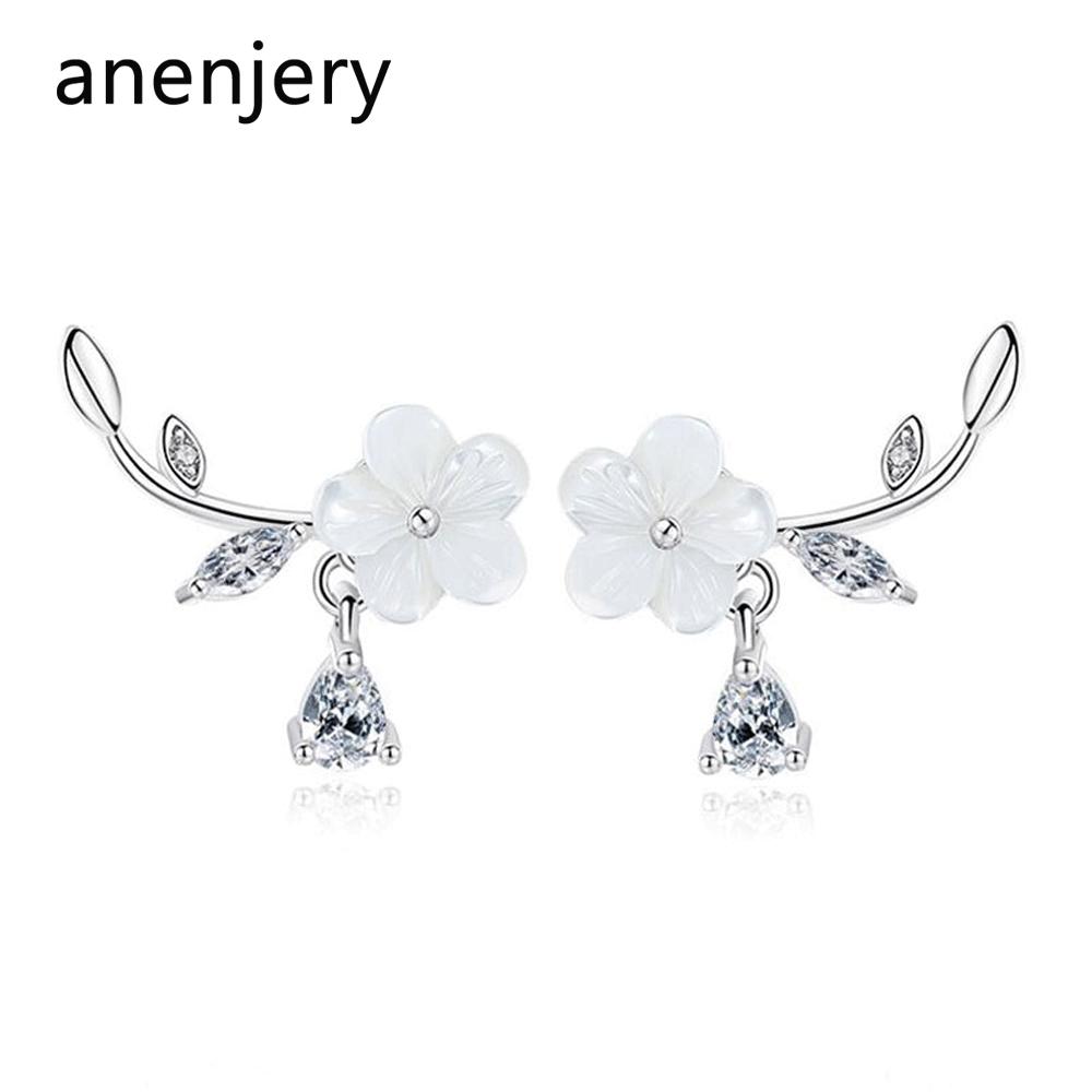 ANENJERY Серьги-гвоздики из натуральных ракушек с цветами для женщин, серьги-капли с кисточками из циркона oorbellen