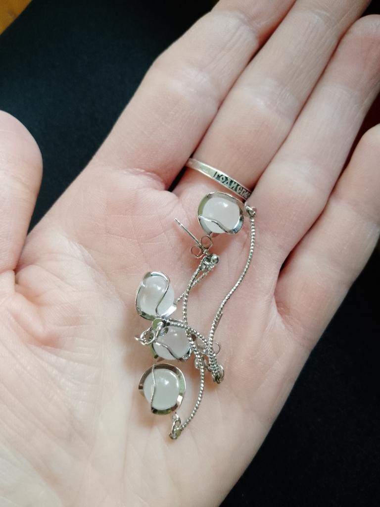 Очень красивые серьги похож, на настоящее серебро, а камни переливаются на свету