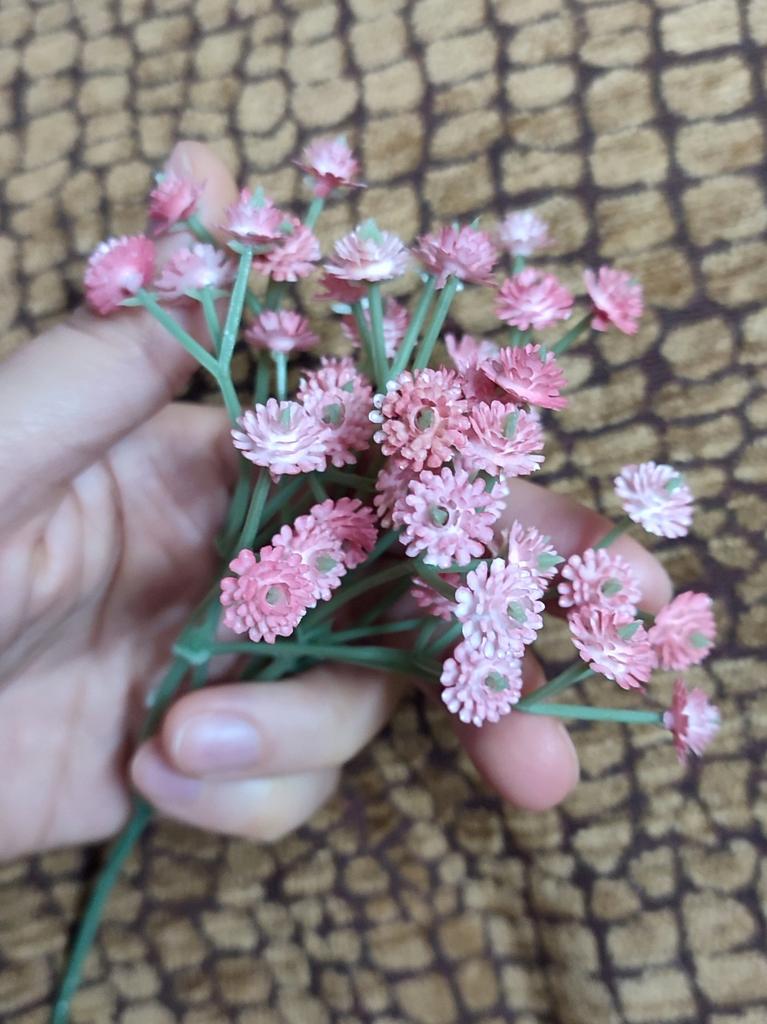 Покупаю не в первый раз. Цветочки очень небольшие. Эта фотография, где получила 3 вместо 5🤷♀️. Бывает. Чтобы получился красивый букетик, надо много покупать. У меня разбавляют большие, количеством 7. Если отдельно, то надо не менее 11. Качество хорошее👍. Спасибо❤