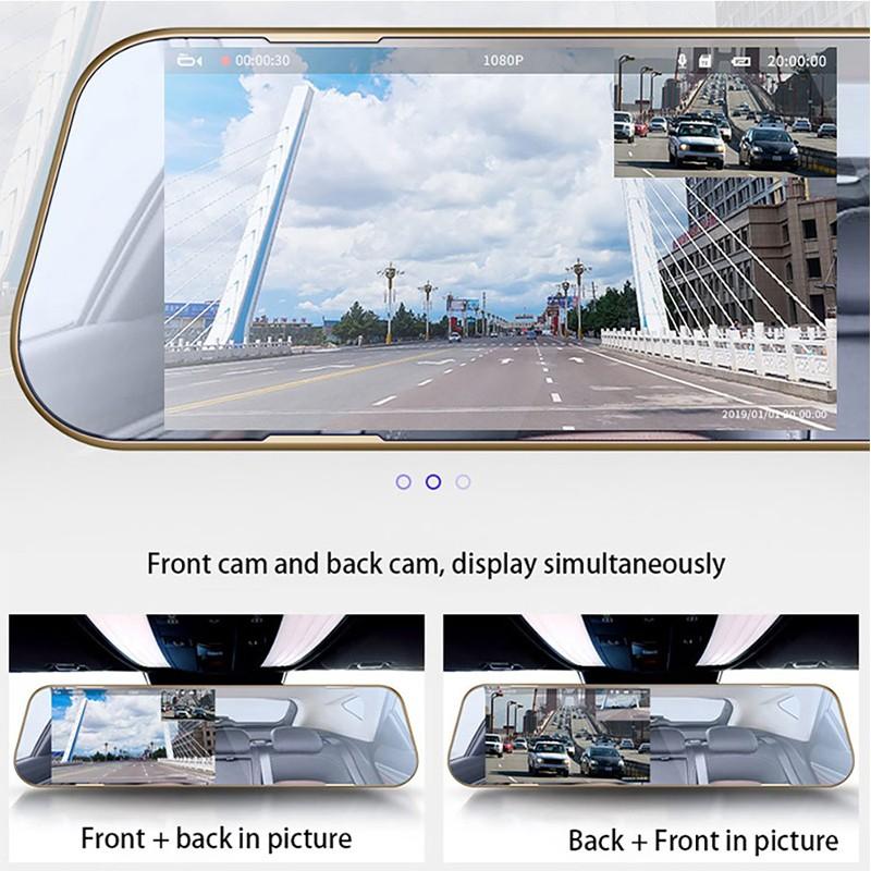 4. Этот автомобильный видеорегистратор имеет две камеры, которые могут записывать видео с двух разных ракурсов одновременно. Дисплей «картинка в картинке» позволяет четко видеть переднюю и заднюю камеры. Когда автомобиль находится на задней передаче, этот автомобильный видеорегистратор автоматически переключается на вид камеры заднего хода с линиями остановки.