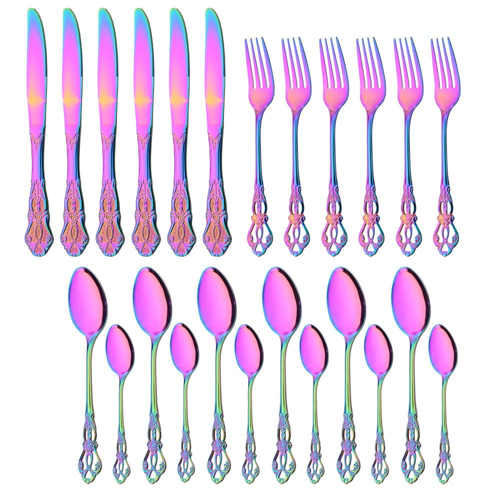 24 шт., роскошный кухонный набор посуды, винтажная посуда, набор столовых приборов из нержавеющей стали в стиле вестерн, Радужный нож, ложка, вилка, набор столовых приборов