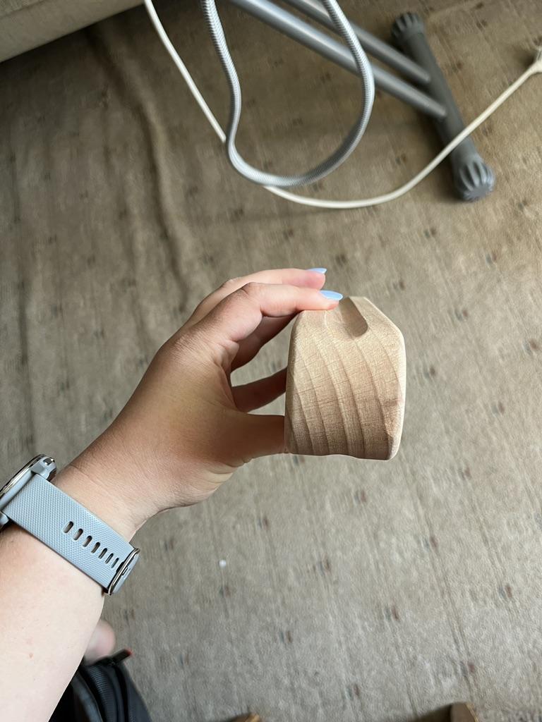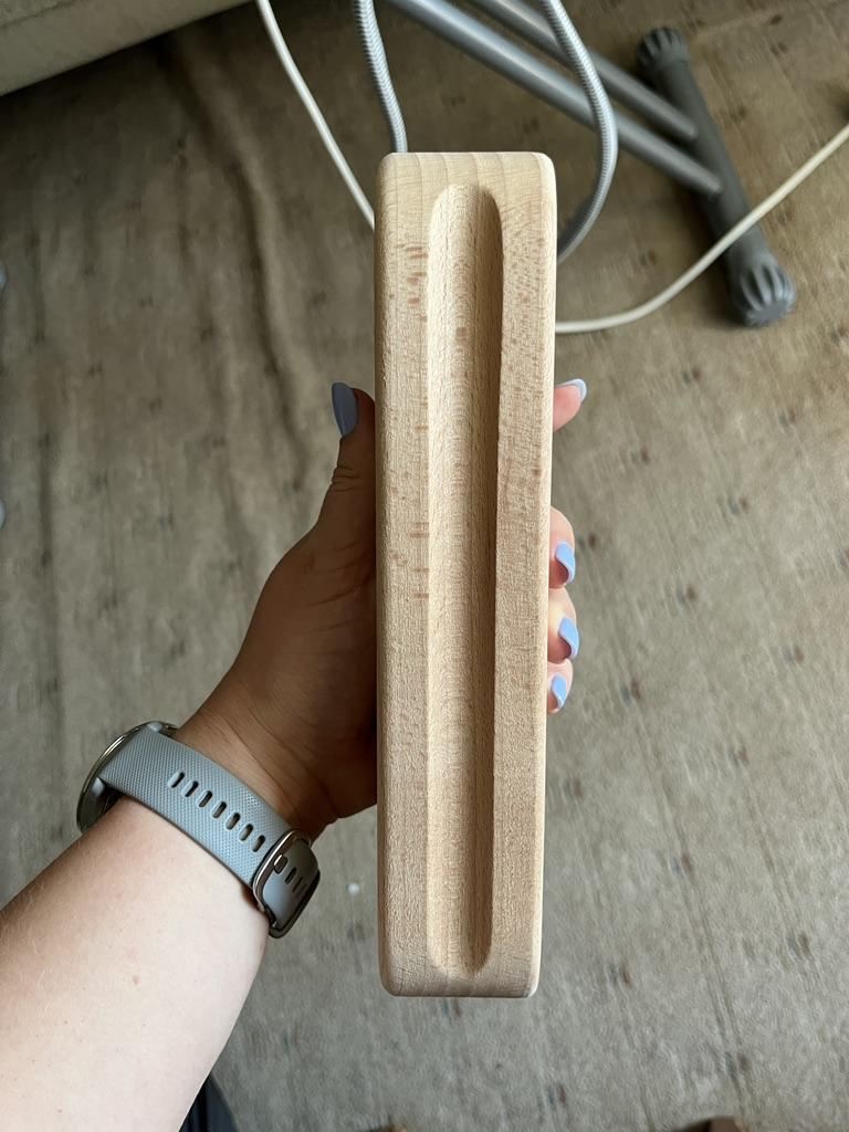 Изначально была супер рада заказу. Колодка пришла достаточно большая, тяжелая, гладенькая, хорошо шлифованная. А через пару месяцев из-за температур и пара на дереве стали появляться заусенцы. Придётся пробовать шлифовать, иначе начинает цеплять ткань (см 4 фото)