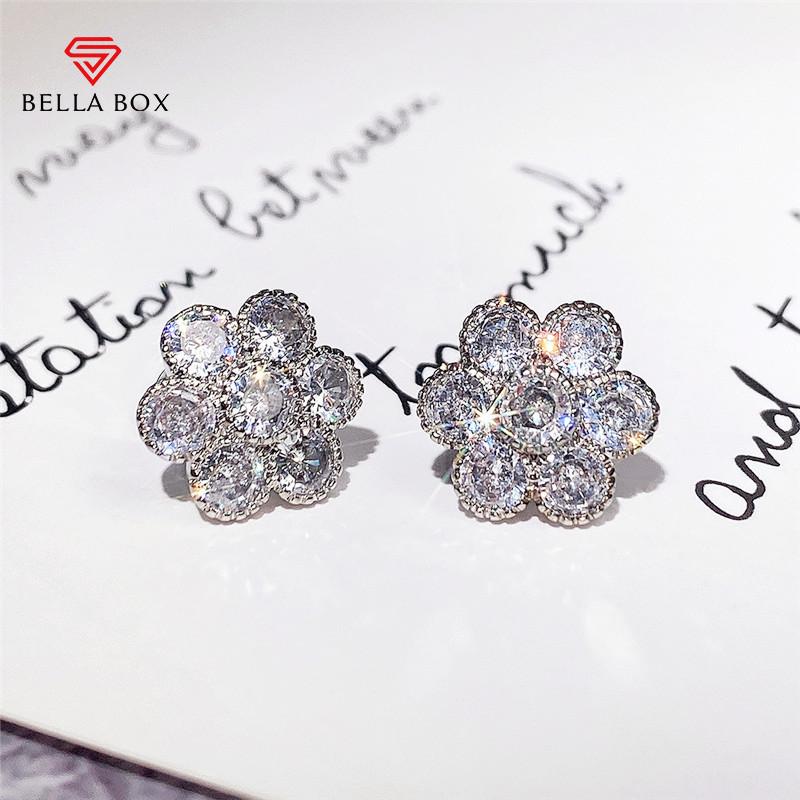 BELLA BOX Нежные цветочные серьги с кристаллами и цирконием, пирсинг ушей, повседневная одежда, шикарные женские аксессуары для танцевальной вечеринки, модные ювелирные изделия