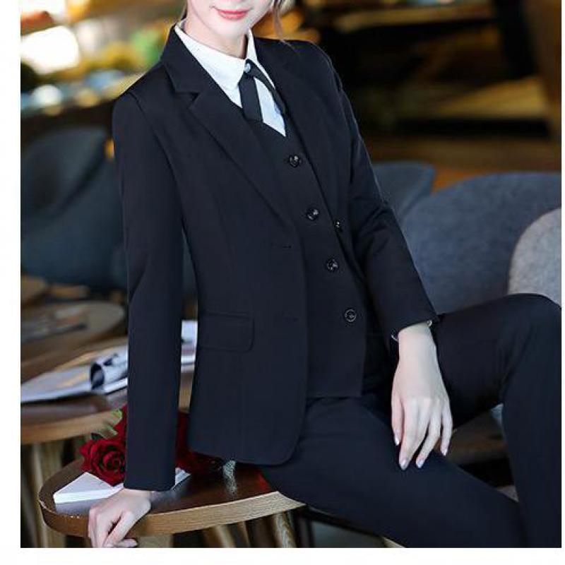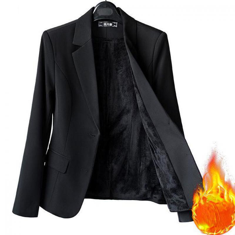 Осенне-зимний утолщенный формальный женский пиджак с длинным рукавом, профессиональная черная рабочая одежда, пальто