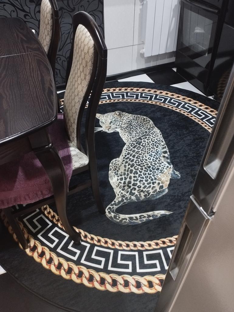 Леопард моя слабость, очень классный ковёр!!! Пришёл чуть раньше, чем написана доставка. Пылесоситься очень хорошо и быстро, я довольна!!! Спасибо большое!!! Лежит на плитке, на кухне и не скользит. Покупала за 6500) благодарю! Подарочков никаких не было, как писали (кофе и что то сладкое). Главное ковёр тот и качество))))