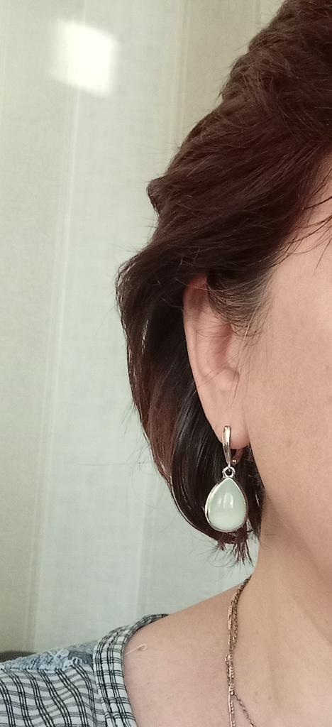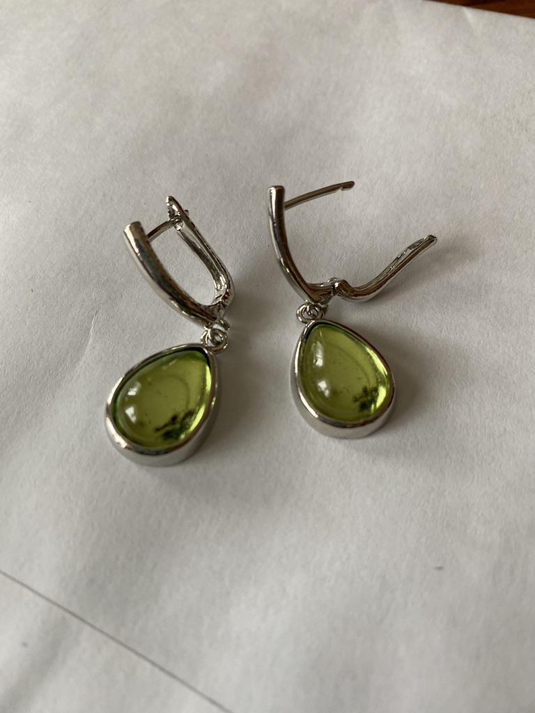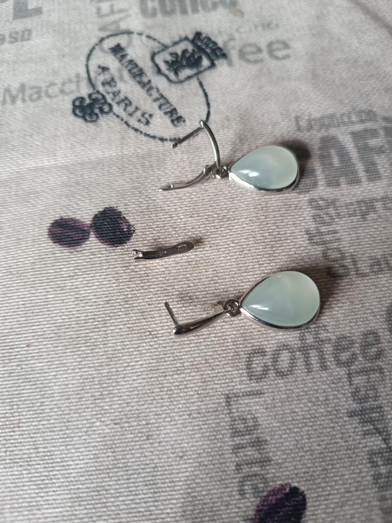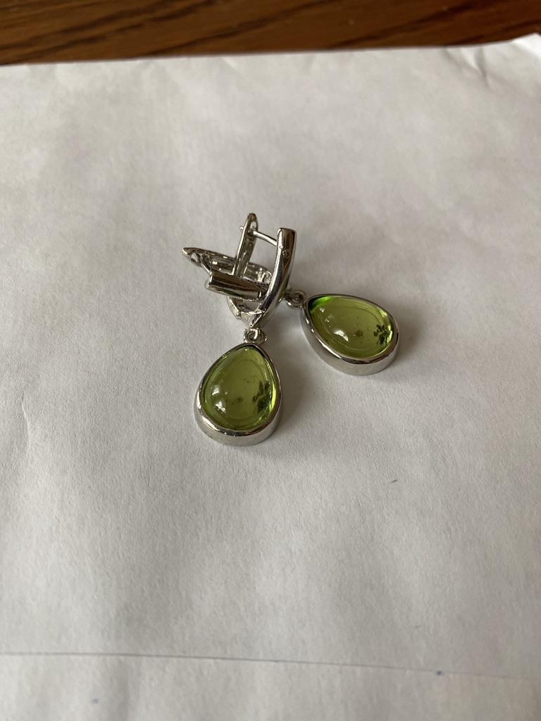 Выглядят попроще, чем на фото. Цвет вставки зеленоватые, ни как на фото. Подбирала для комплекта. Фурнитура ненадежная, мне показалась.