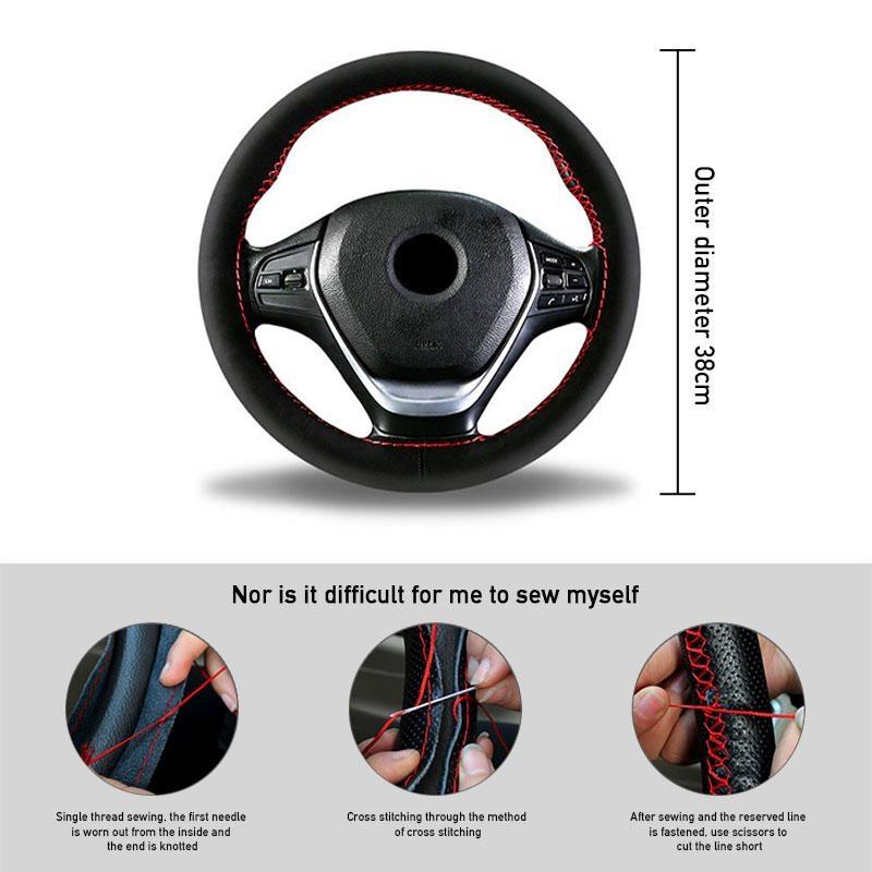 SEAMETAL Меховой чехол на руль для автомобиля, универсальный 38 см, плетеный защитный чехол на руль автомобиля, кожаные противоскользящие внутренние детали